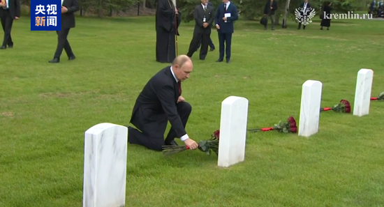 当地时间15日,在与美国总统特朗普会晤后,俄罗斯总统普京前往阿拉斯加州的苏联飞行员墓献花。