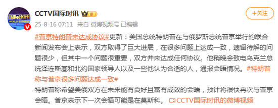 当天稍早前,特朗普与普京进行了超过两个半小时的小范围会谈。